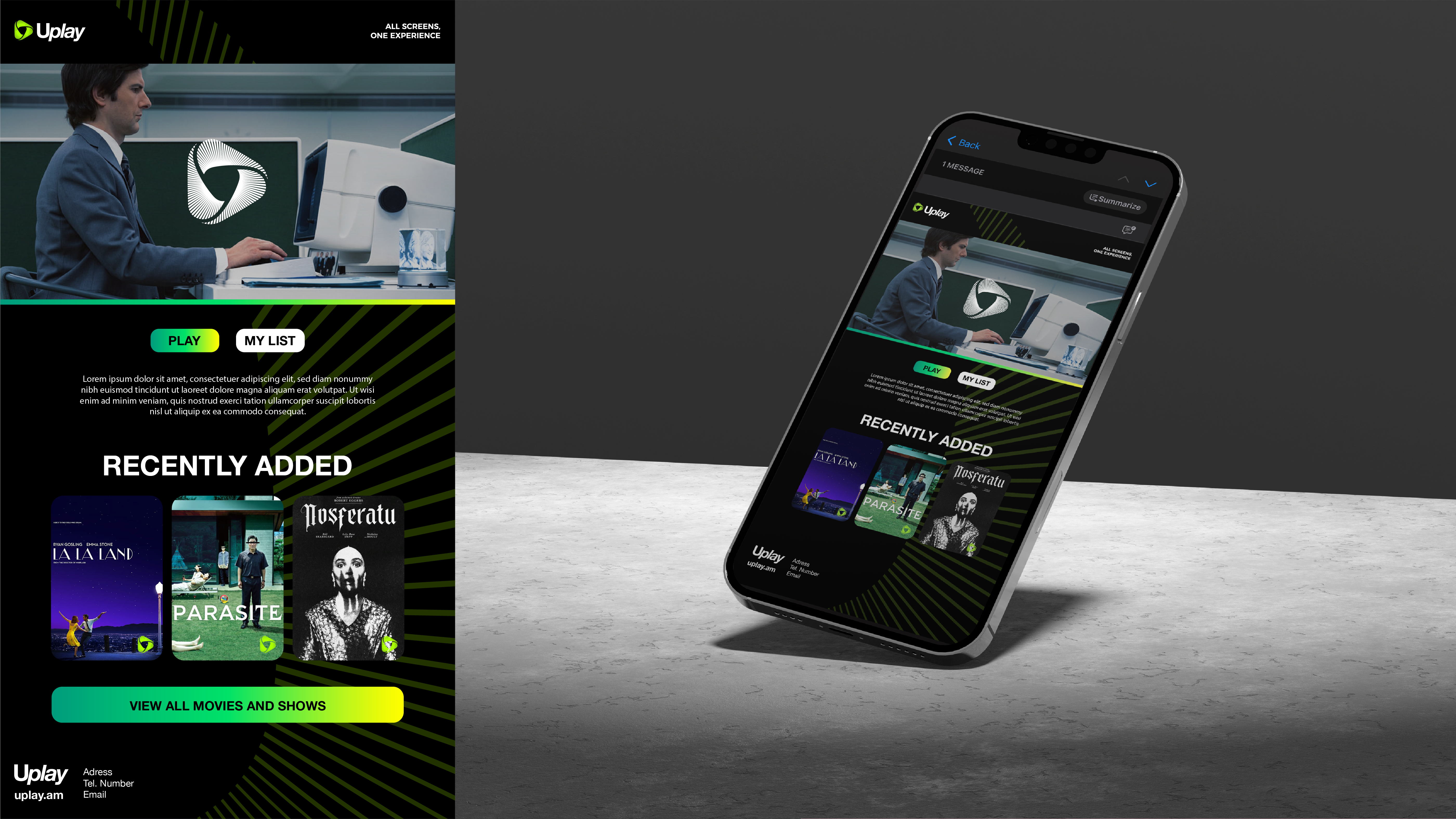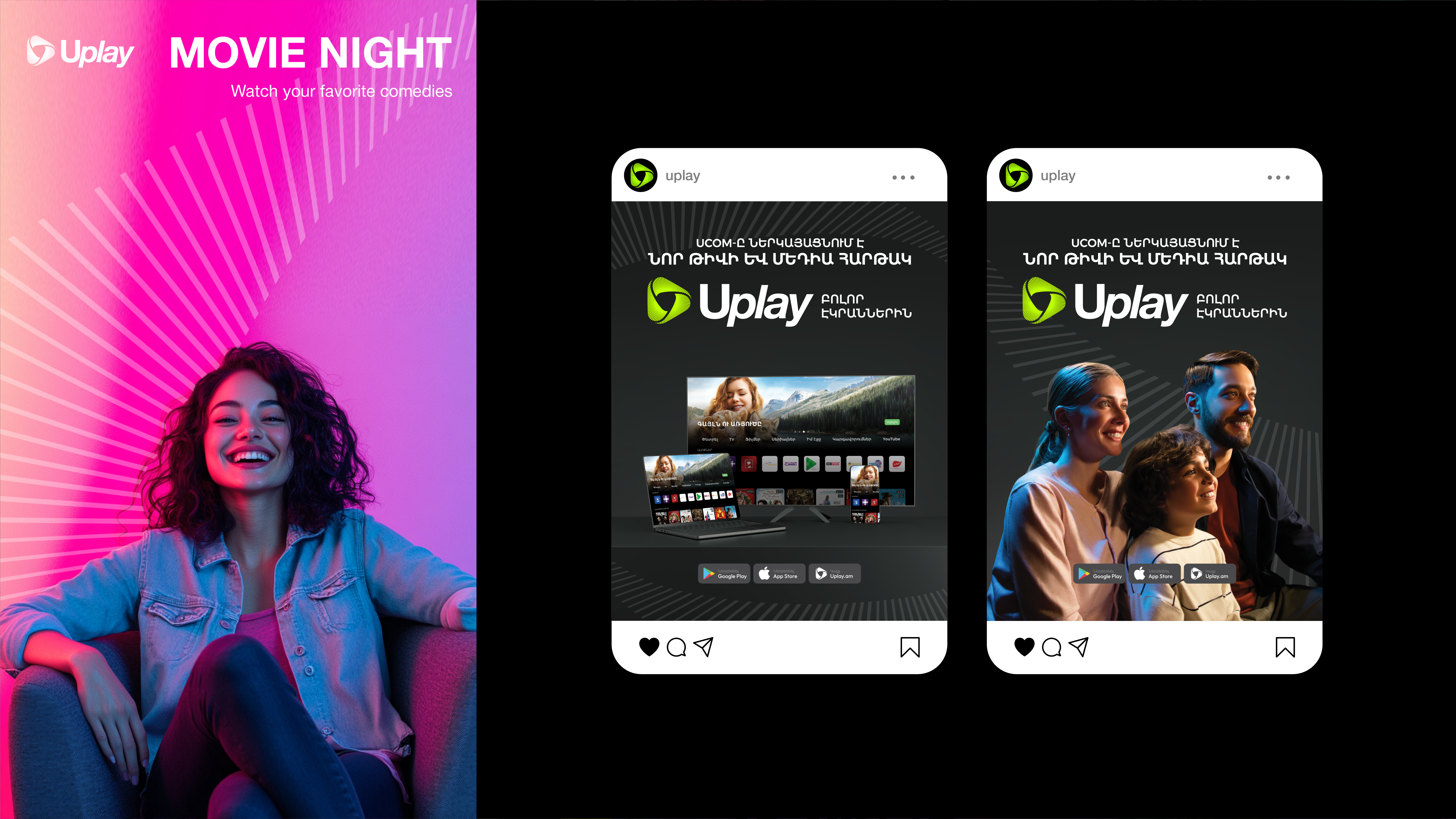 Ucom, Armenia’s leading telecom provider, relaunched Uplay as a unified entertainment platform, replacing the legacy UTV service with an all-in-one experience of live TV, on-demand, and local content. The challenge was to convey a new standard of entertainment: seamless, immersive, and instantly accessible across screens, places, and moments.